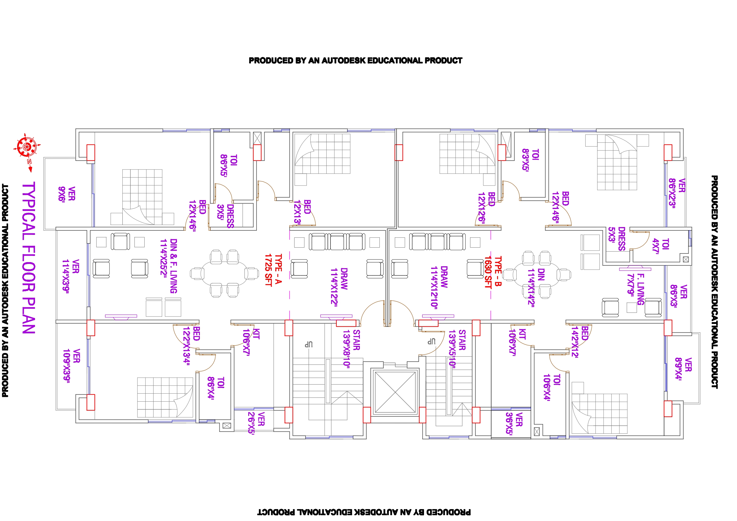 Unit Type A: Unit Type A, spanning a generous 1725 square feet, offers an expansive living space that allows residents to create their dream home. This unit type is ideal for those who appreciate roominess and luxurious living. The spacious layout can accommodate various desires, from hosting grand gatherings in the ample living area to preparing culinary masterpieces in the well-appointed kitchen. The large bedrooms provide comfort and tranquility, making Unit Type A an ideal choice for those seeking an opulent living experience.
